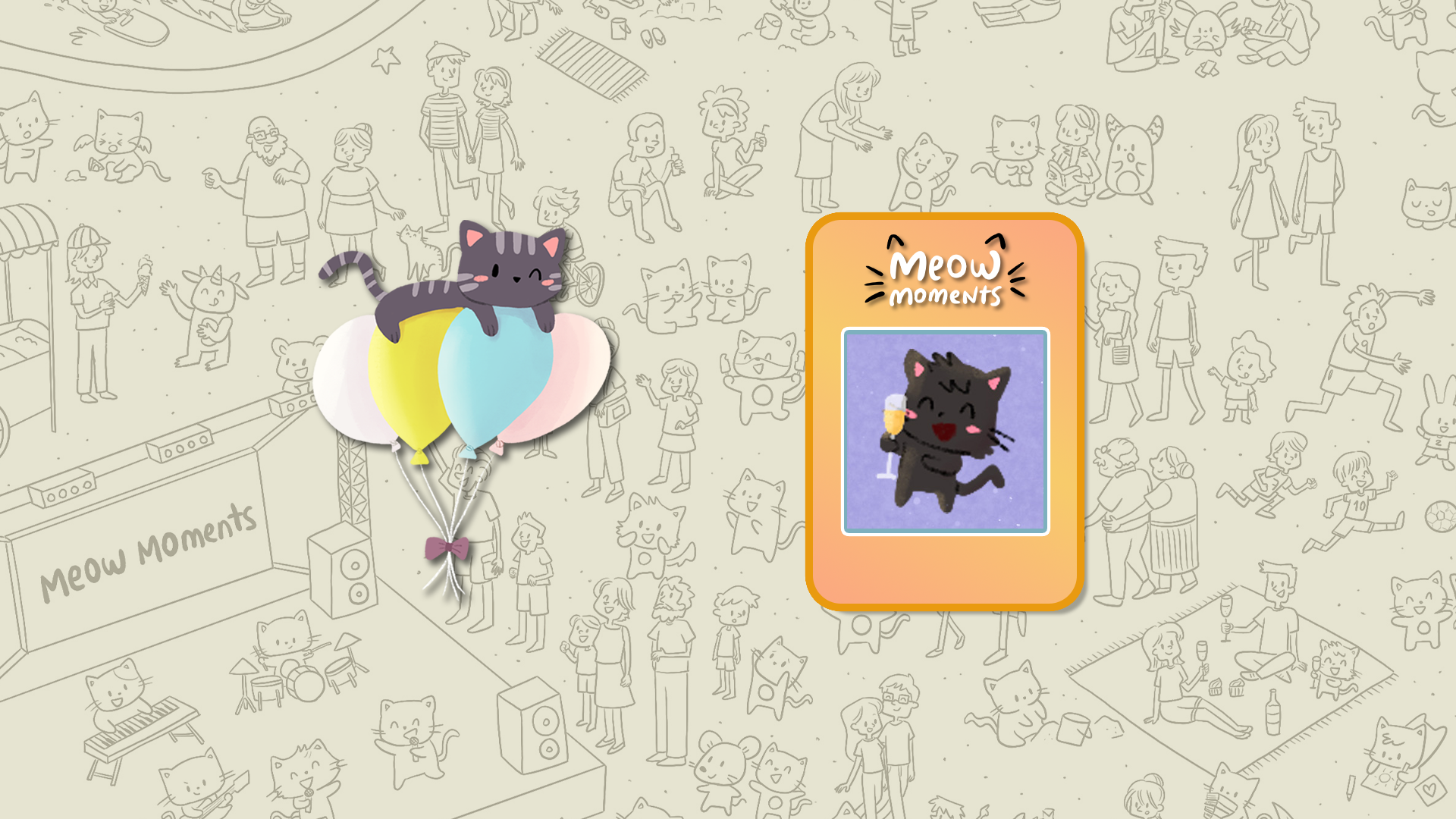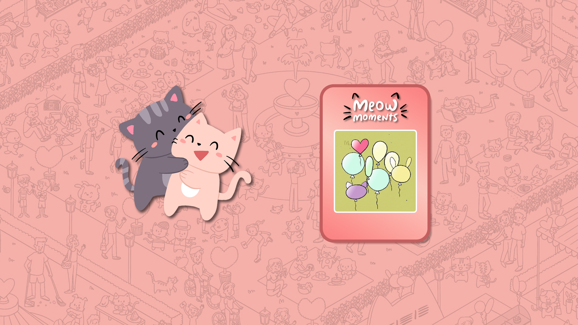 Rejoignez de mignons chats en fêtes ! Trouvez des amis félins et éclatez des ballons en explorant le Nouvel An à Copacabana et partagez des moments doux pour la Saint-Valentin.